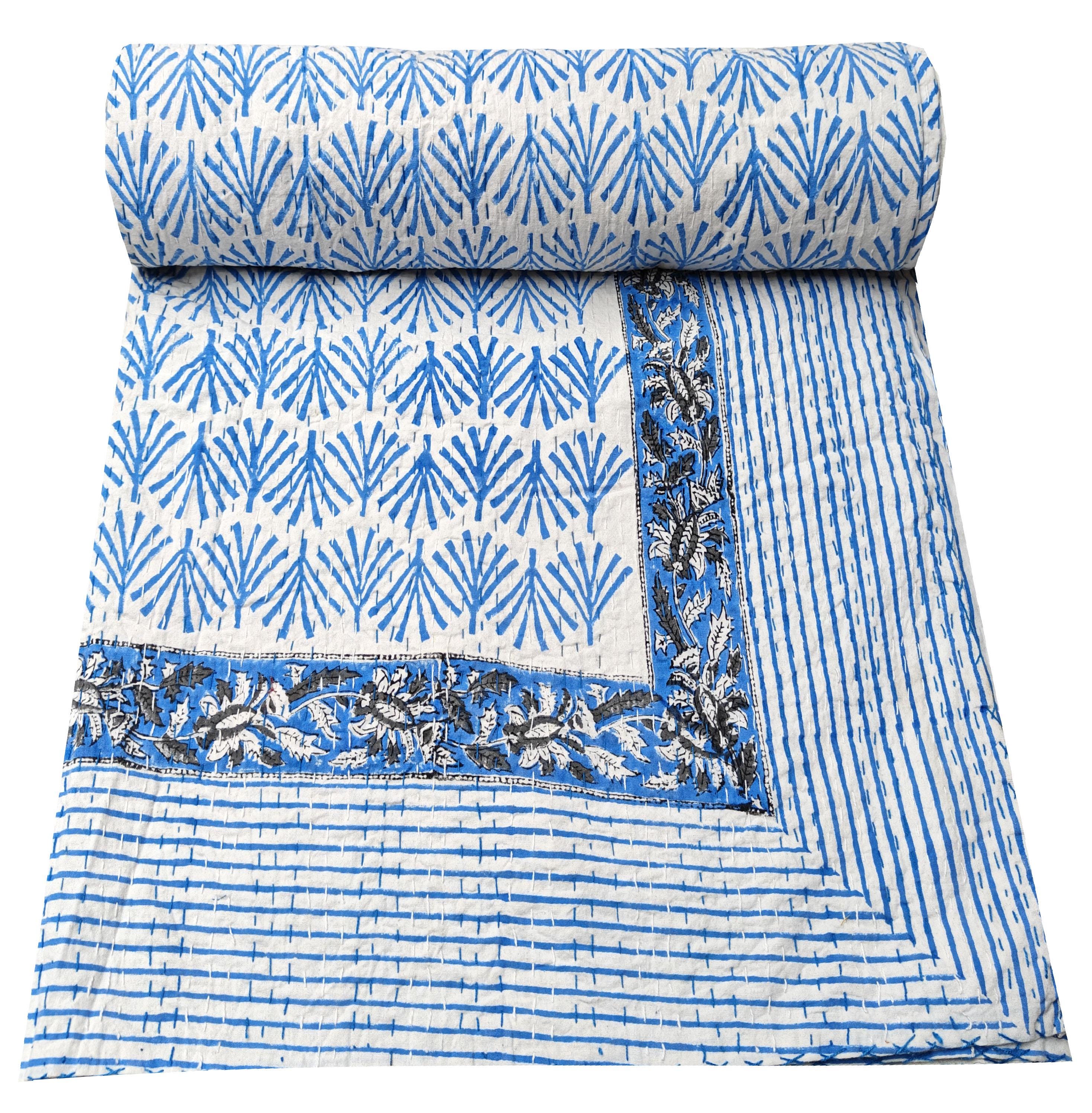 Beautiful floral Print kantha quilt Indian hand block kantha quilt Reversible cotton Bedding Bedspread Queen Size Kantha Gudari