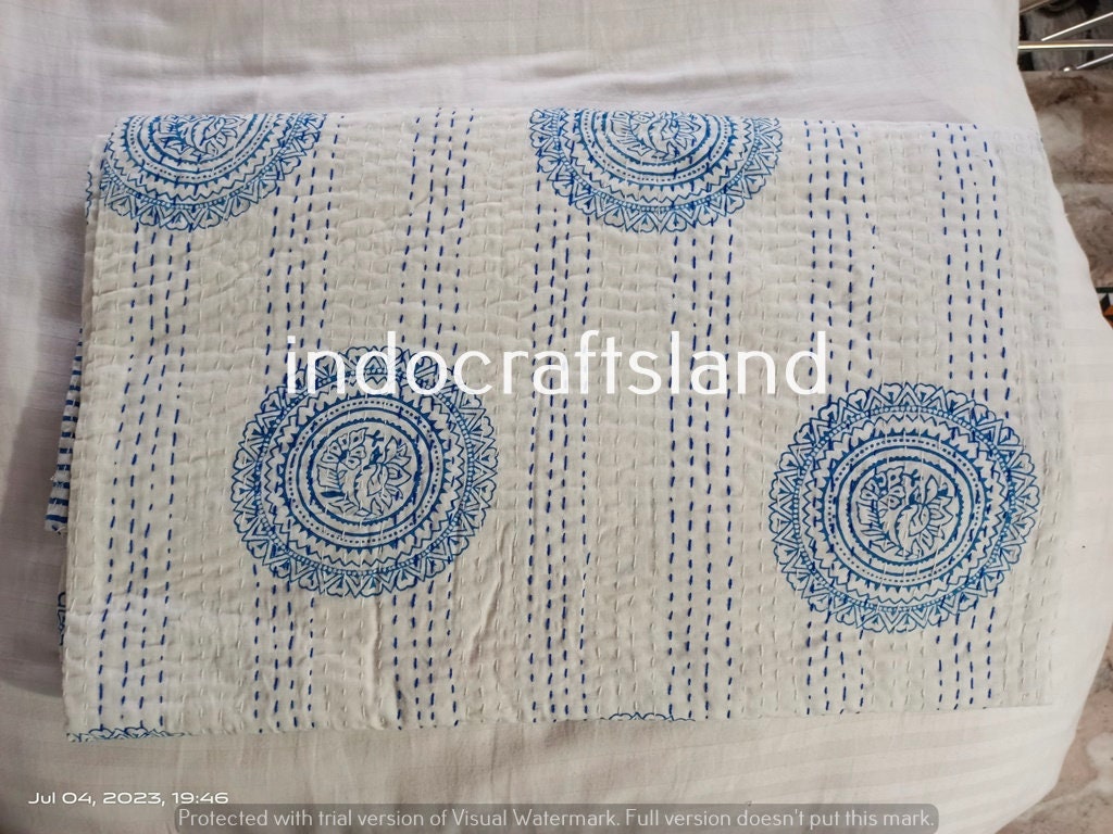 Whether you drape it over your bed, couch, or favorite chair, it's sure to make a statement and breathe new life into your decor. Bright colors add vibrancy to your living space / bedroom. It can be used in a variety of ways as quilt, blanket, bed cover, bed throw, bedspread, table cover, coverlet, curtains, wall hanging, tapestry, rug for picnics/beaches and carpet. Due to Kantha stitches this item can be washed in a cold, delicate cycle in a washing machine.