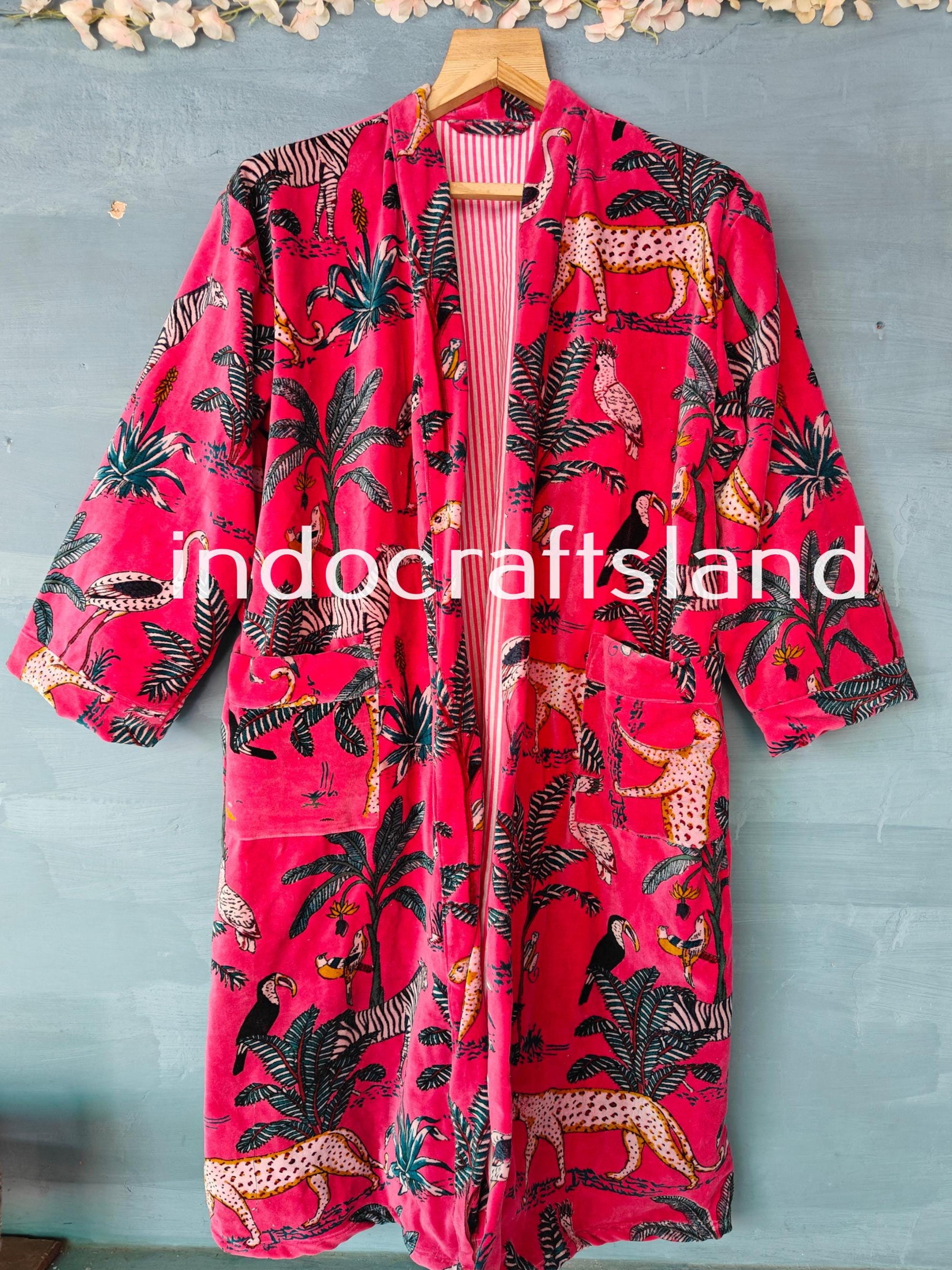 Handmade Indian Floral Velvet Jacket – Boho Kimono Robe for Bridesmaid & Resort Wear