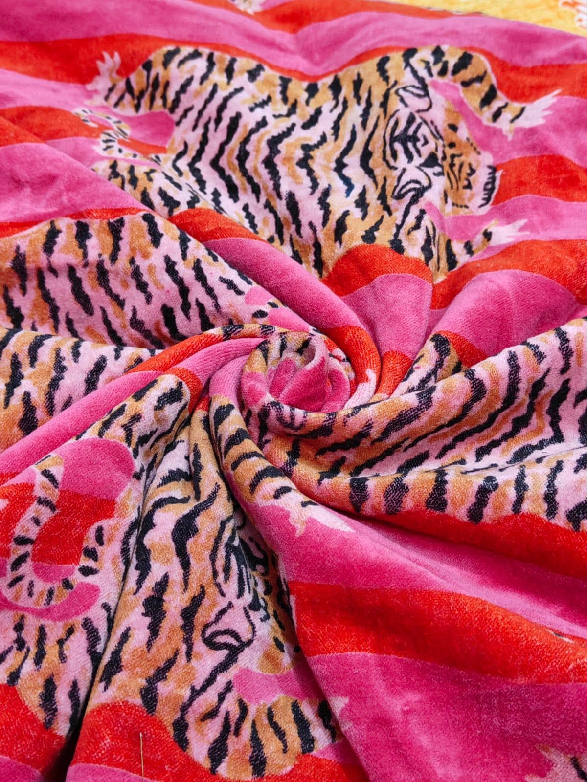 Pink Printed Cotton Velvet Fabric