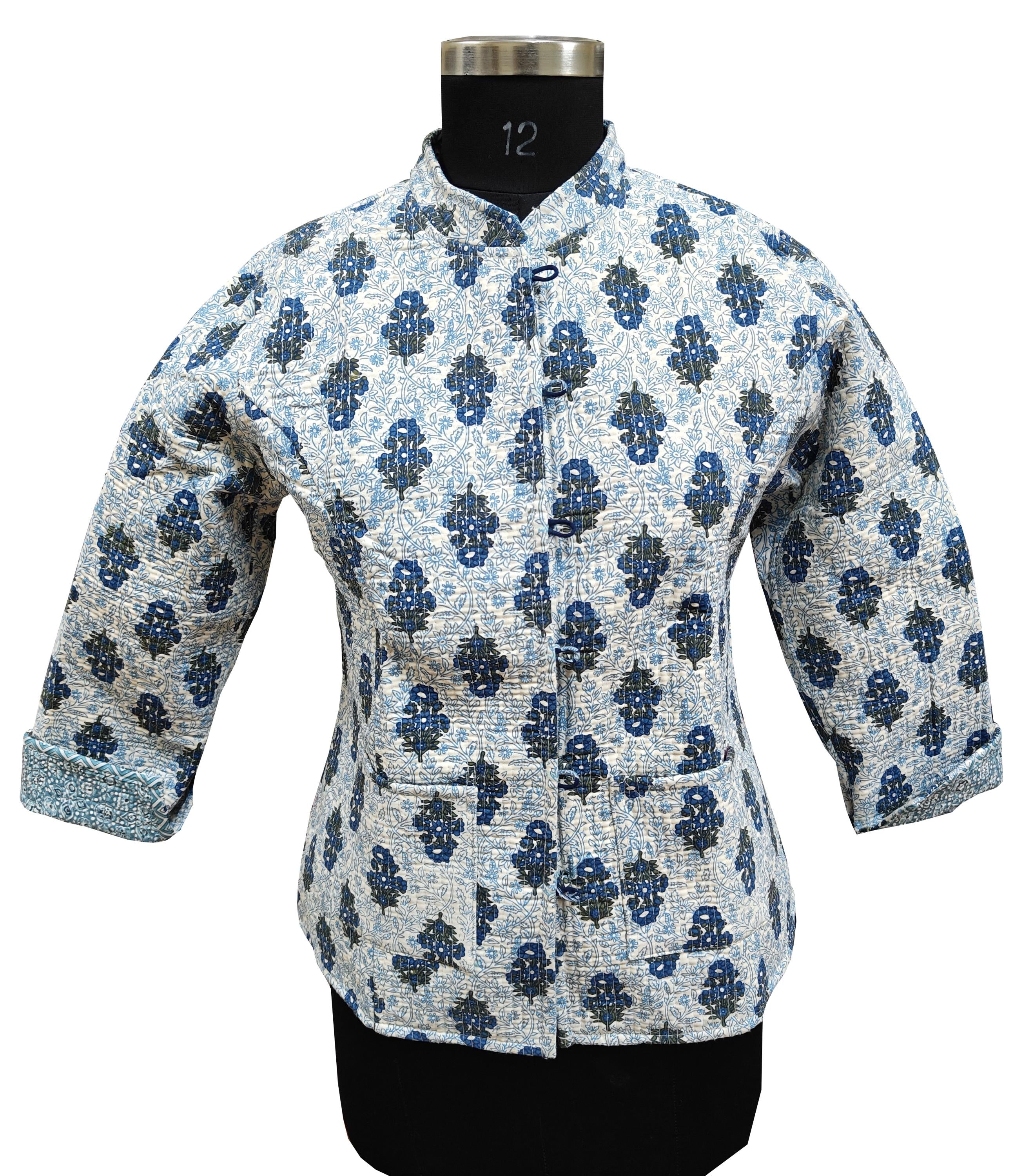Quilted Reversible Hand Block Printed Boho Jacket – Indian Vintage Handmade Full Sleeve Coat for Women
